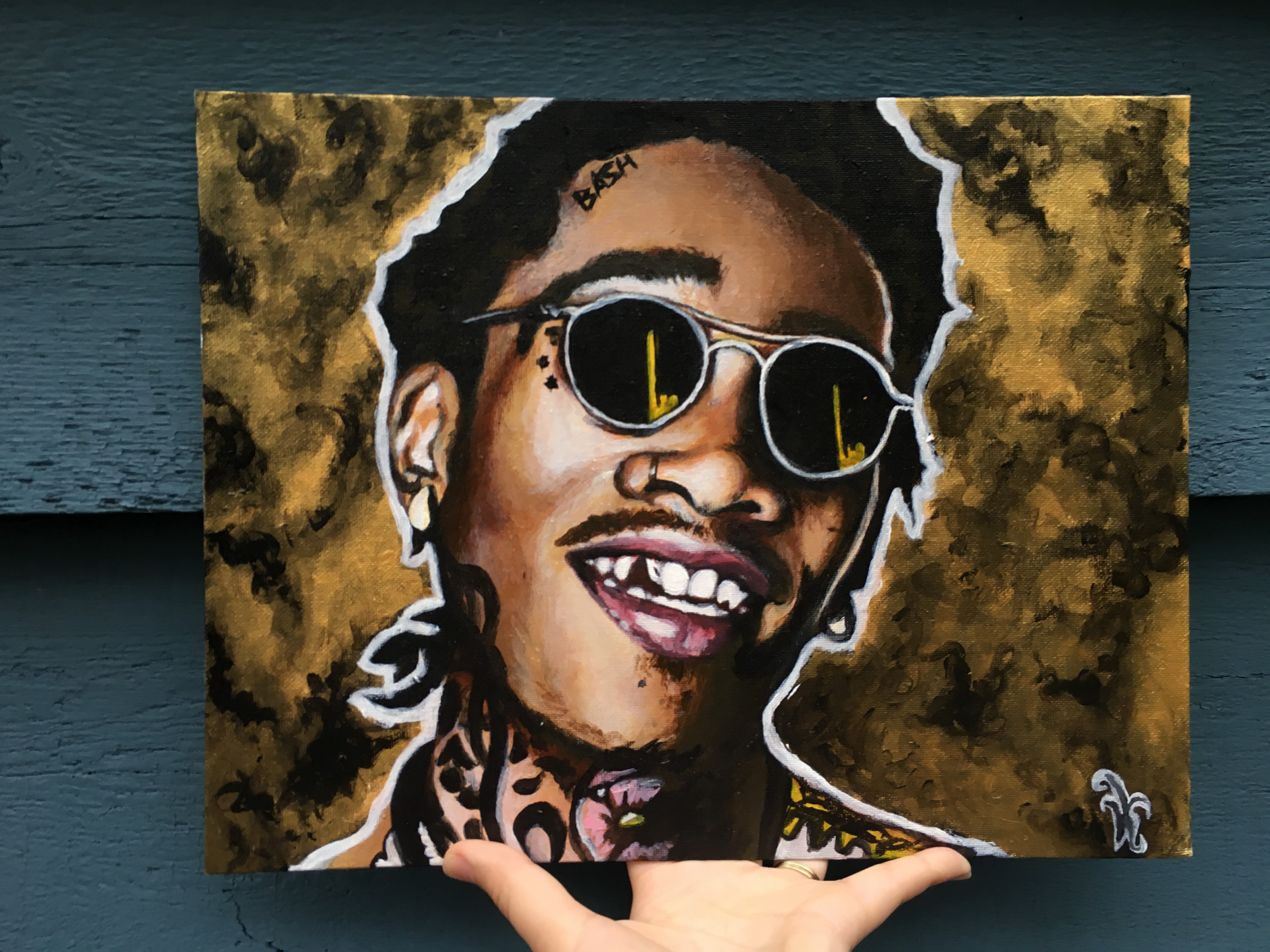 Wiz Khalifa painting. Acrylic on canvas board. Started at a live painting session for Columbia college and finished later on at home.